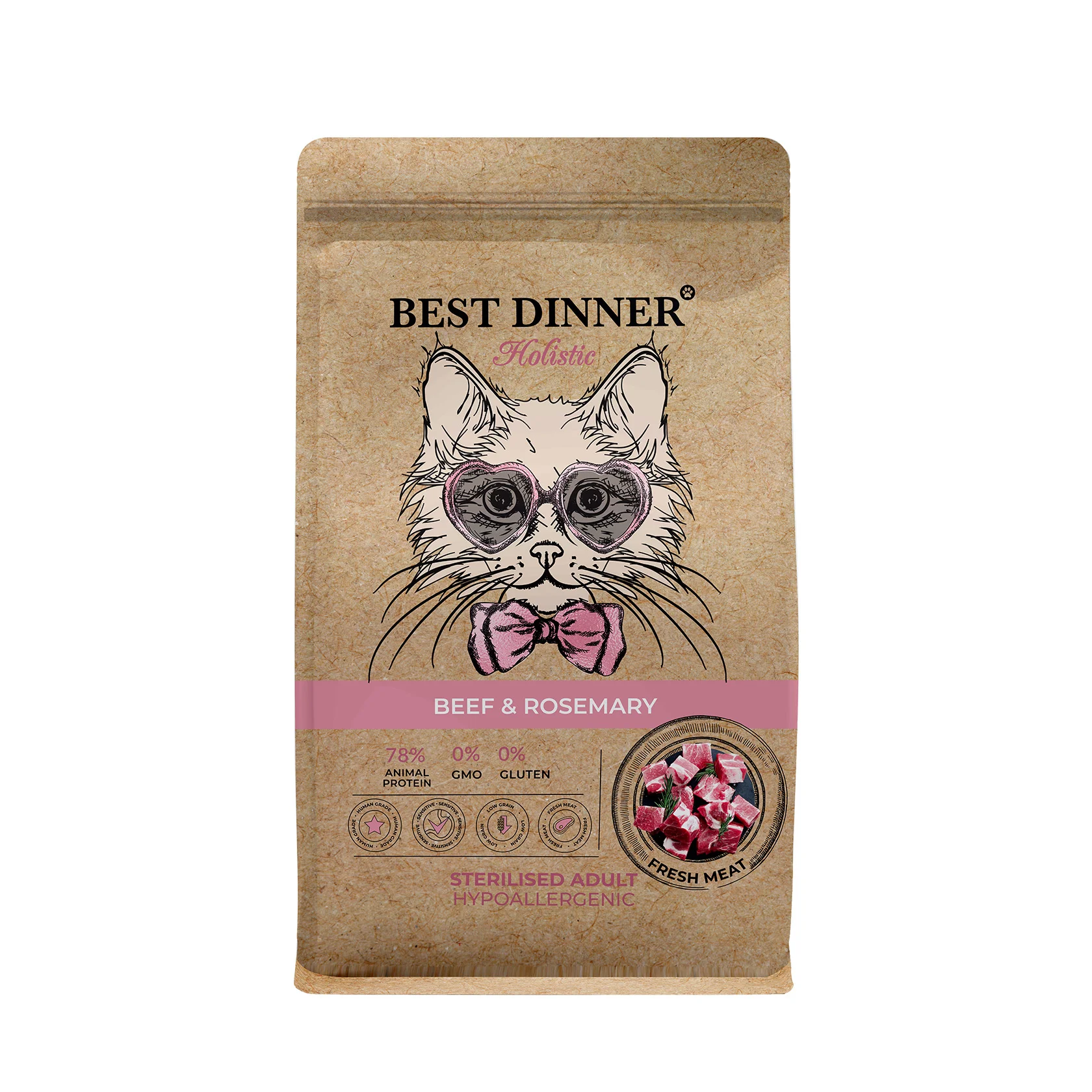 Best Dinner Holistic Hypoallergenic Adult Sterilised Cat BEEF&ROSEMARY для стерилизованных кошек с Говядиной и розмарином 10 кг