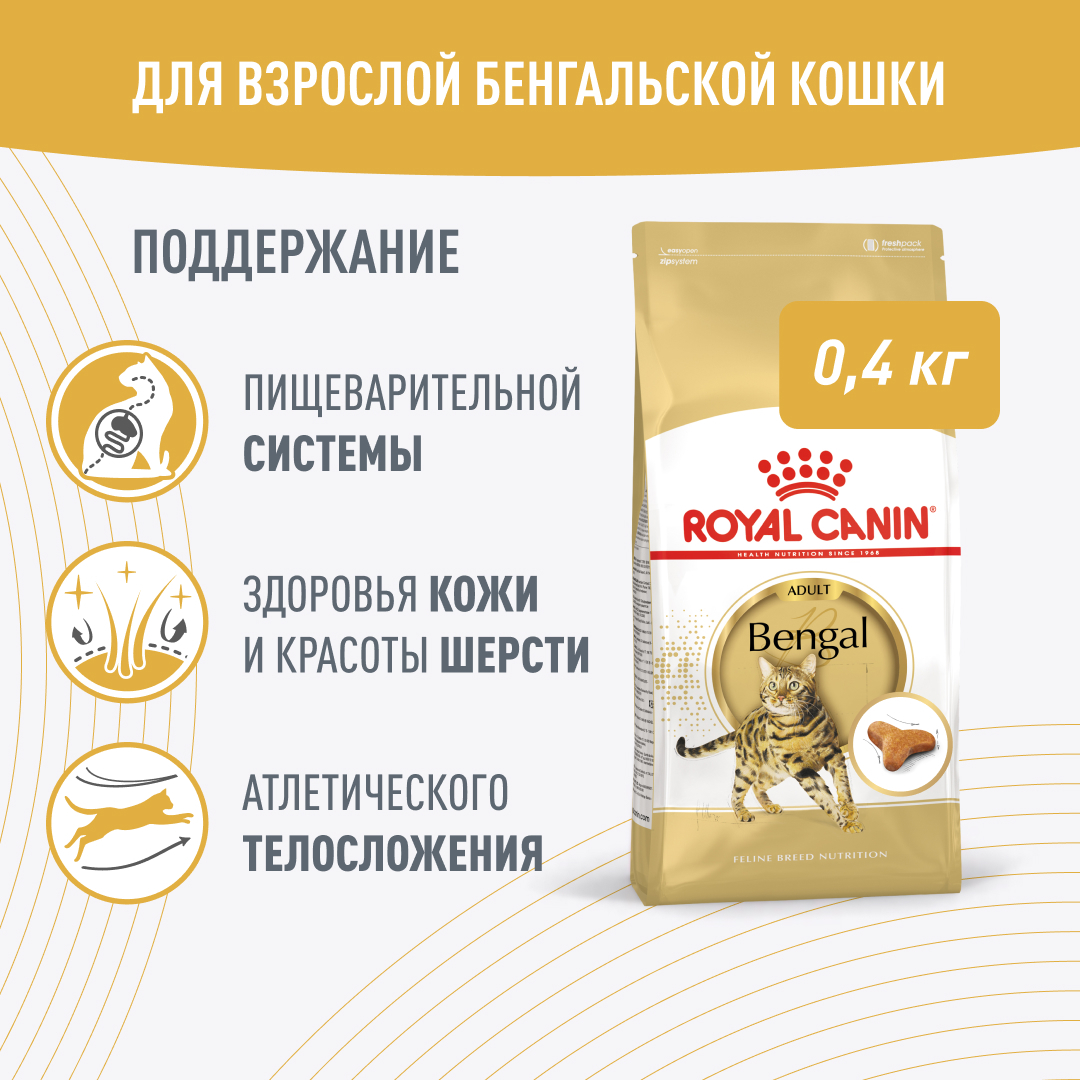 Royal Canin BENGAL ADULT (БЕНГАЛ ЭДАЛТ) Корм сухой полнорационный сбалансированный для взрослых кошек бенгальской породы старше 12 месяцев ПРЕИМУЩЕСТВА: