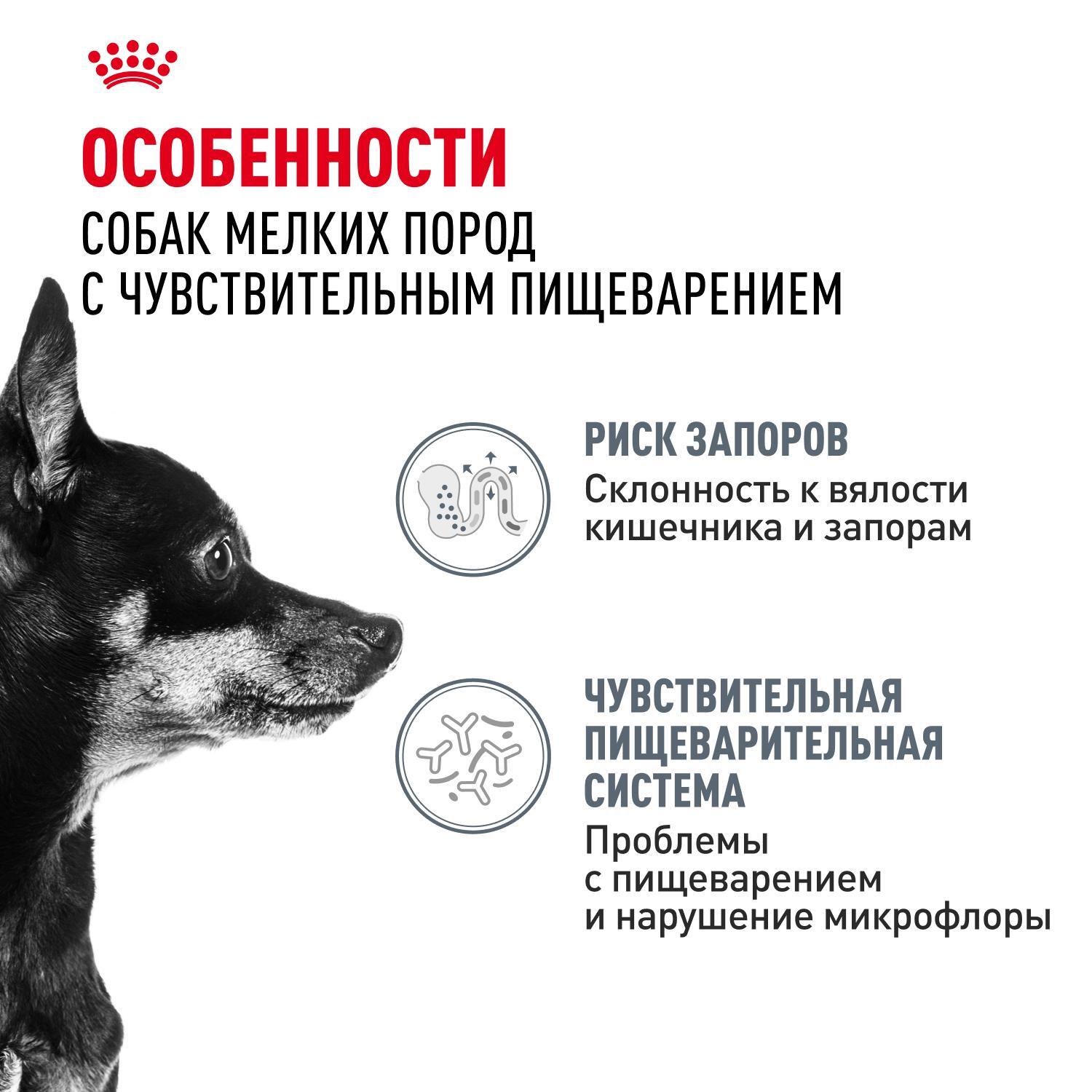 Корм ROYAL CANIN Digestive Care Mini для собак весом до 10 кг был разработан специально для собак с чувствительным пищеварением. Собаки мелких пород часто привередливы в питании, поэтому формула продукта ROYAL CANIN Digestive Care Mini имеет привлекательный аромат и высокую аппетитность.