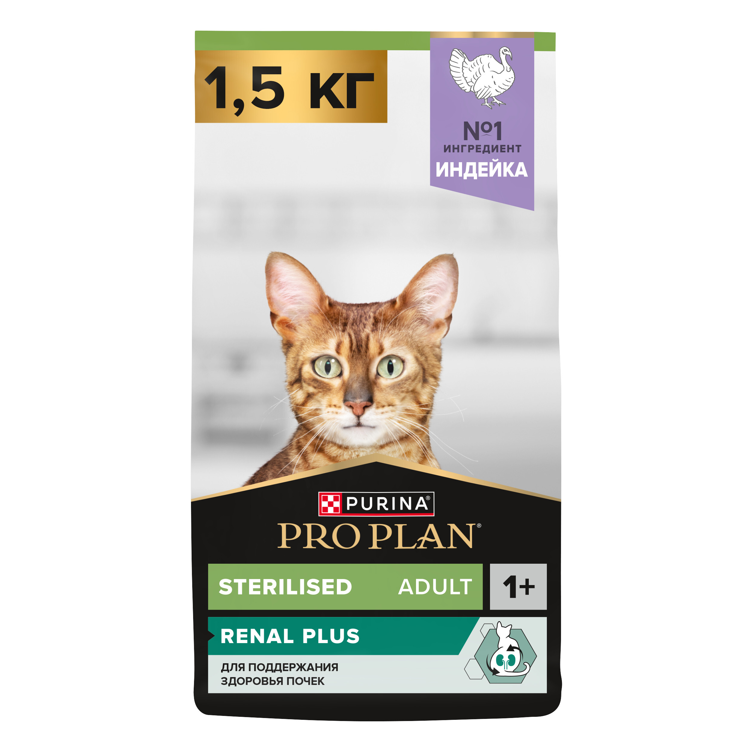Команда квалифицированных ветеринарных специалистов разработала рацион PRO PLAN® Sterilised Adult RENAL PLUS для взрослых стерилизованных кошек для поддержания здоровья почек*. Этот сбалансированный полнорационный сухой корм c высокой вкусовой привлекательностью создан с учетом потребностей питомцев в высококачественном белке, а также витаминах и минералах, важных для здорового функционирования организма.