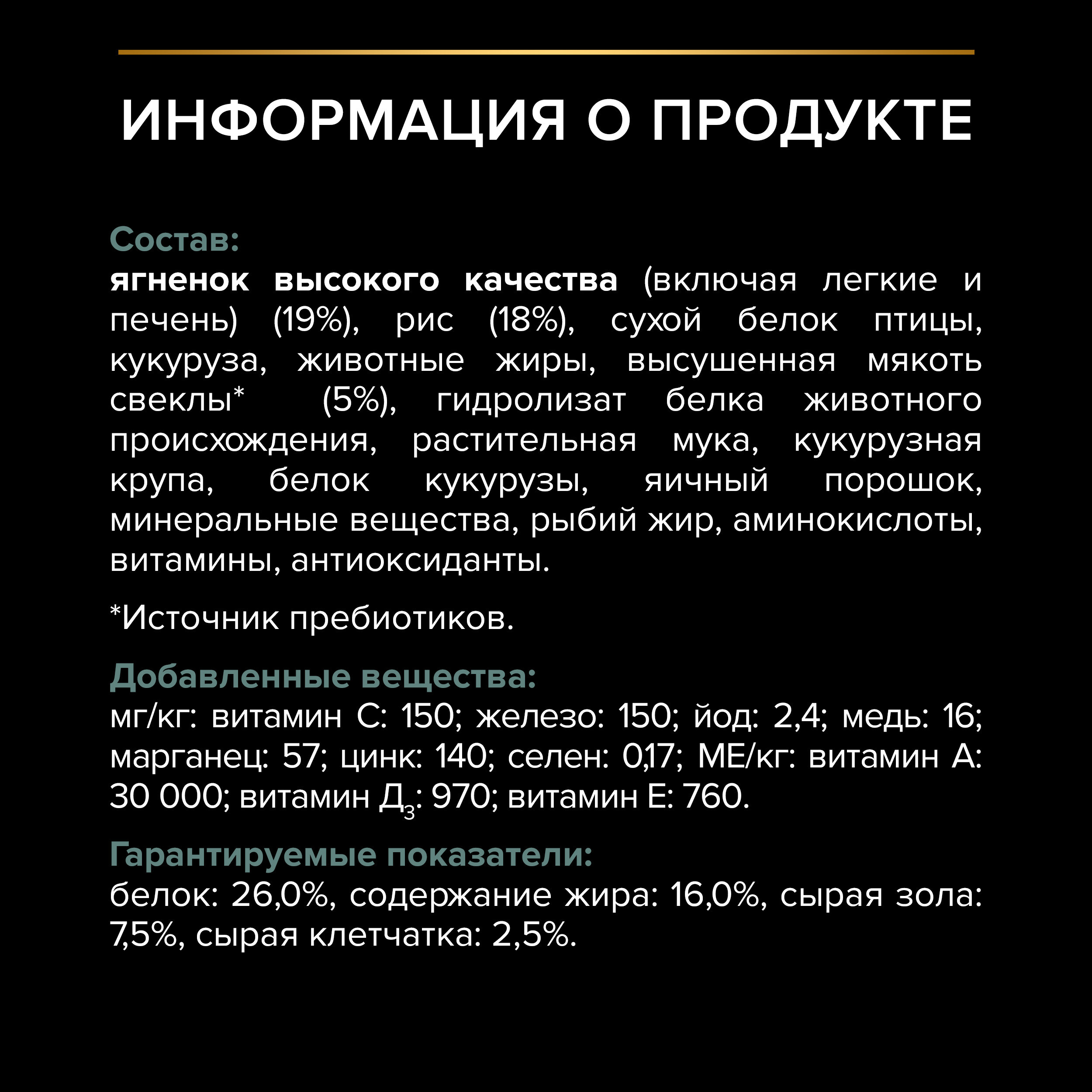 Сухой корм PRO PLAN SENSITIVE DIGESTION для взрослых собак средних пород с чувствительным пищеварением ягненок 3 кг