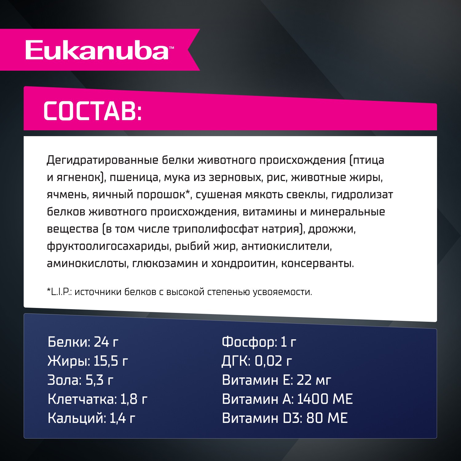 Сухой корм Eukanuba для взрослых собак мелких и средних пород старше 1 года с ягненком 800г