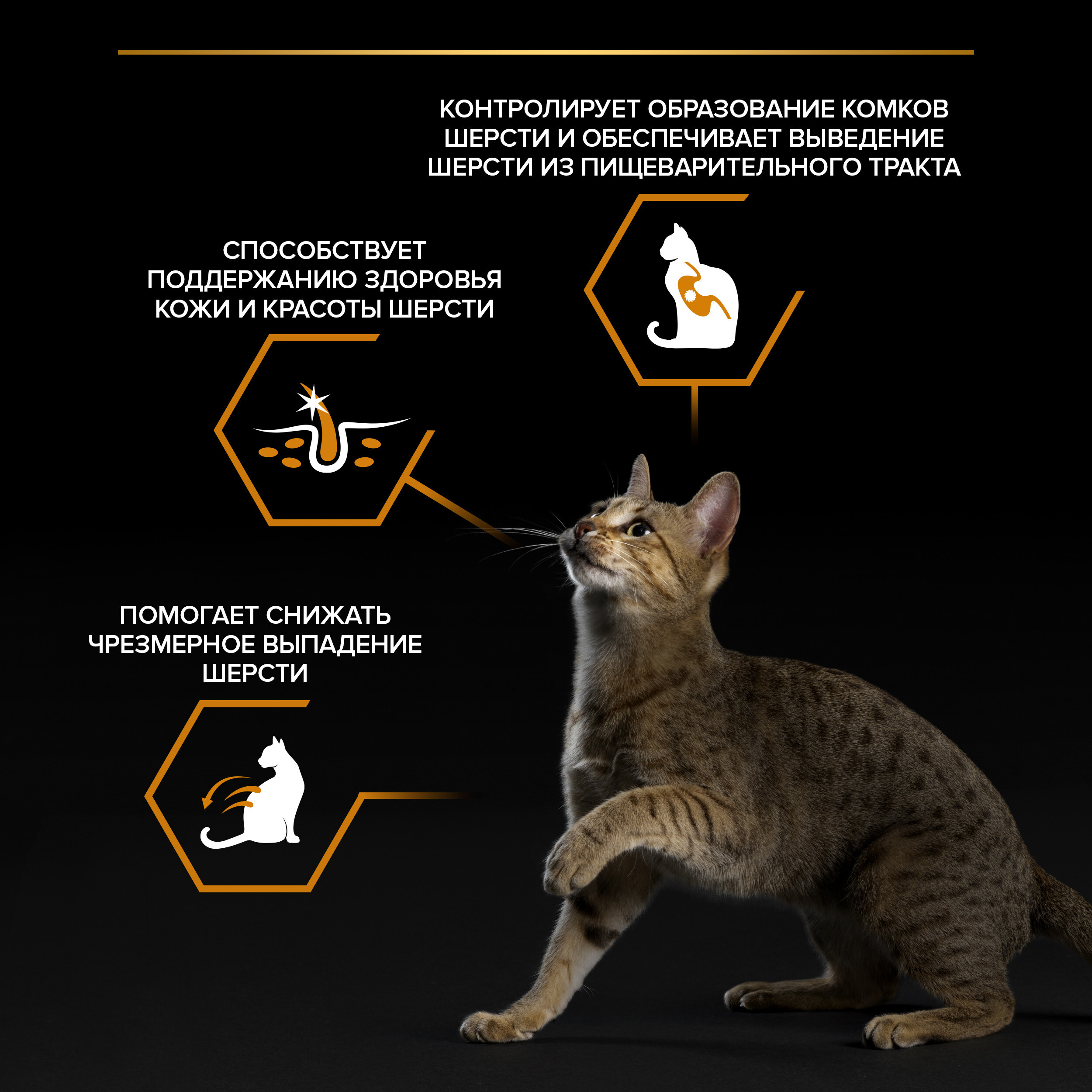 • Содержит клетчатку, которая налаживает работу пищеварения и мягко выводит комочки шерсти из кишечника.